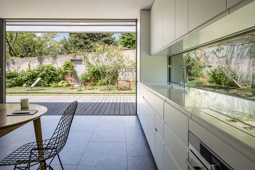 Cuisine sur mesure avec plan de travail en Corian et évier intégré - Agencement complet maison moderne